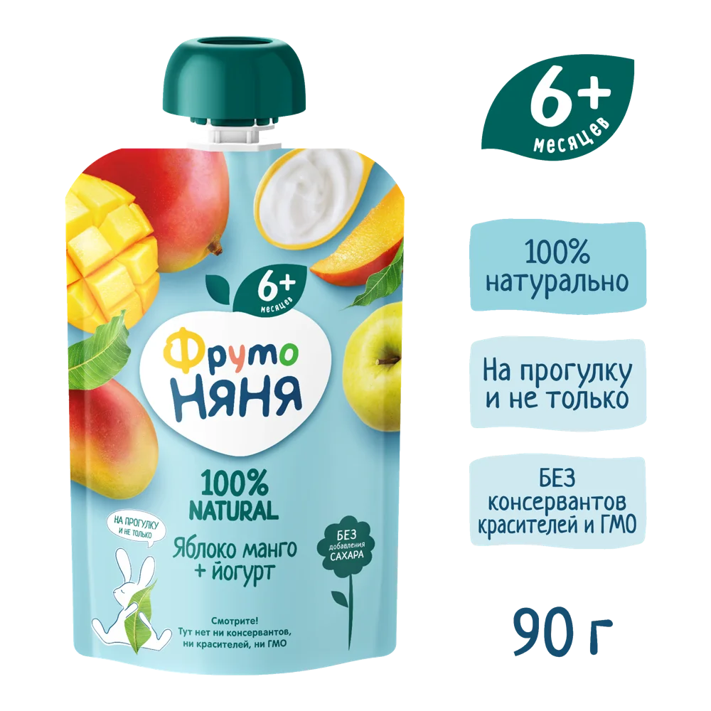 Apple, mango & yogurt puree, FrutoNyanya, 3x90 g (set of 3)