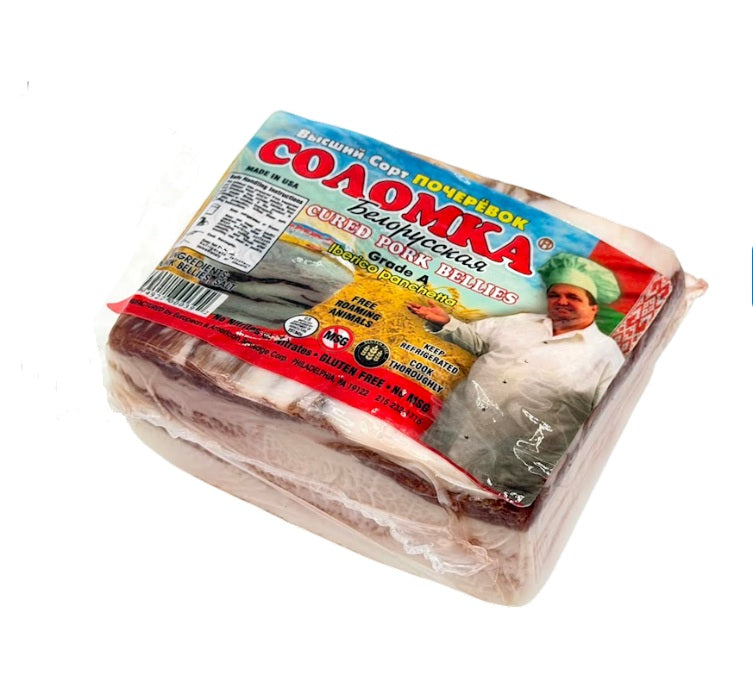 Authentic Belorussian salo represents centuries of Eastern European charcuterie tradition. This cured pork belly from Solomka delivers the characteristic tender texture and rich, savory flavor that defines this delicacy. Each piece showcases the perfect balance of salt-curing and aging, creating a distinctive taste profile with subtle garlic and spice notes. Ideal for serving chilled as an appetizer, slicing thin for traditional presentations, or incorporating into regional dishes. A premium selection for those seeking genuine Eastern European culinary heritage.