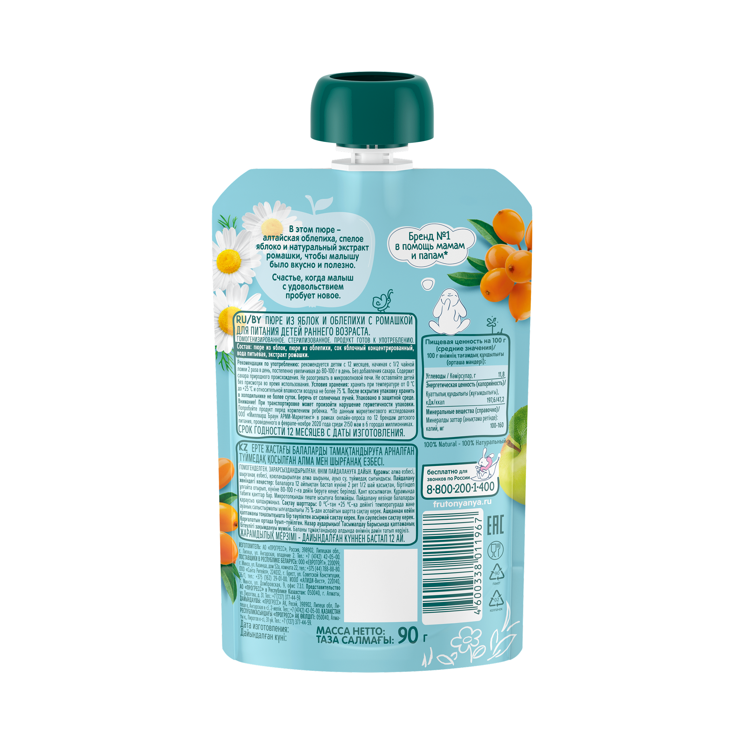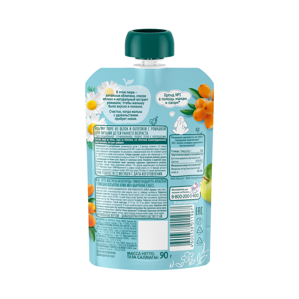 Ingredients: Apple puree, sea buckthorn puree, concentrated apple juice, drinking water, chamomile extract.