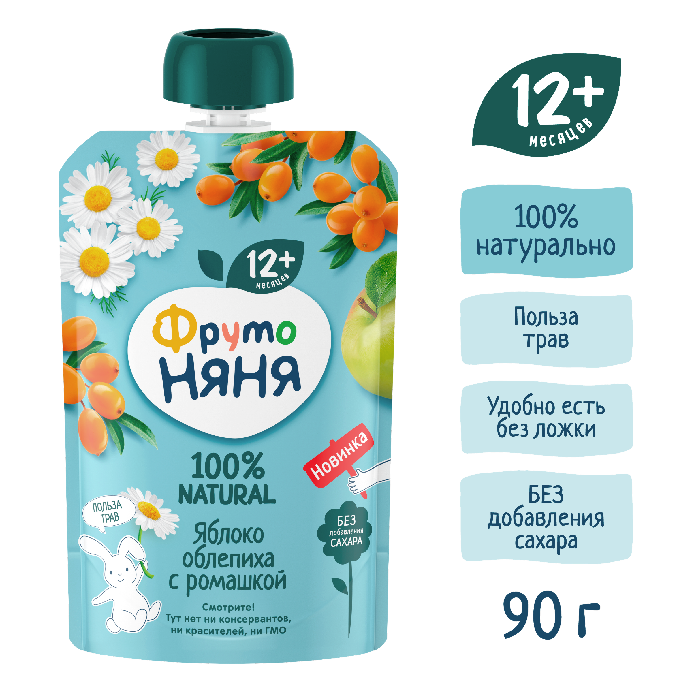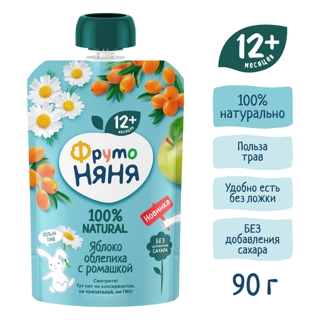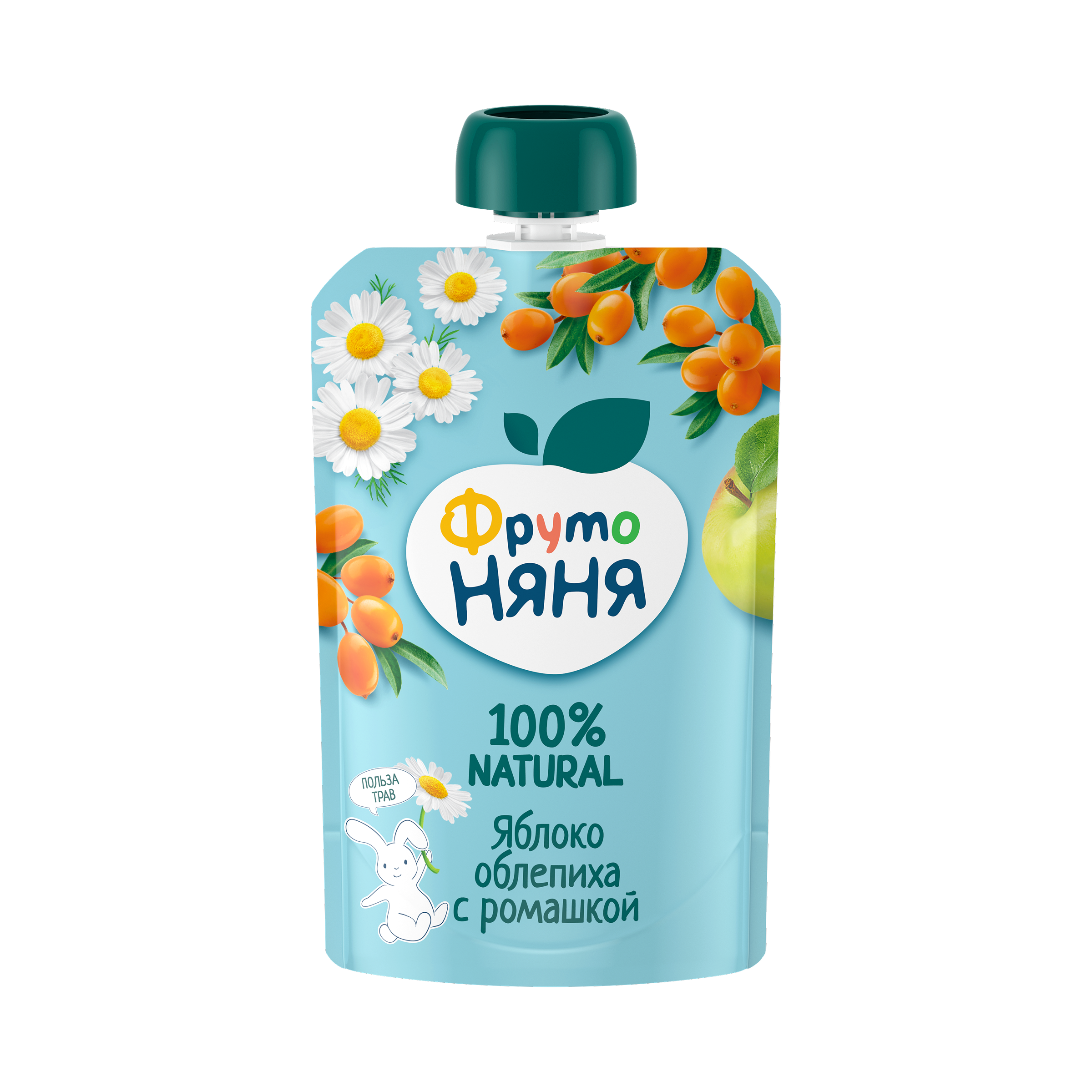 FrutoNyanya Fruit Puree in Soft Packaging with Apple, Sea Buckthorn, and Chamomile is a tasty and healthy snack that is convenient to take on the go. The bright soft pouch will attract your baby’s attention and make it easy for them to eat on their own.