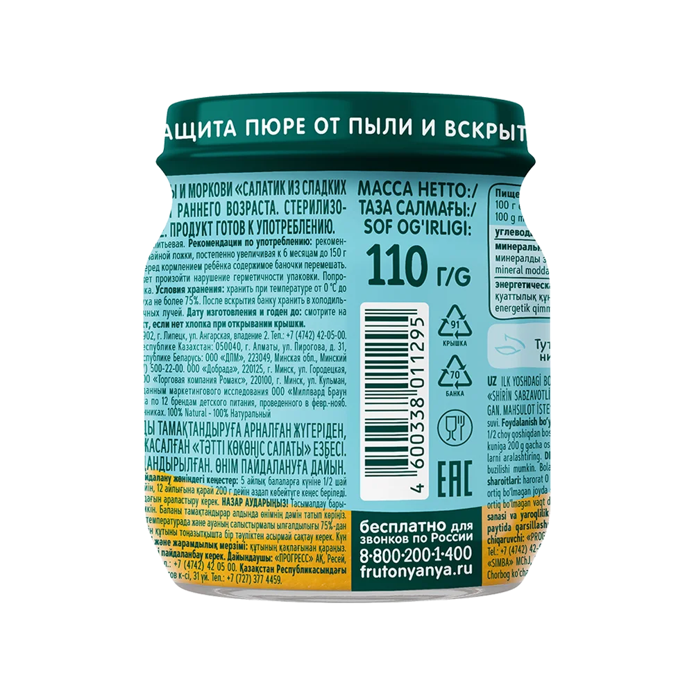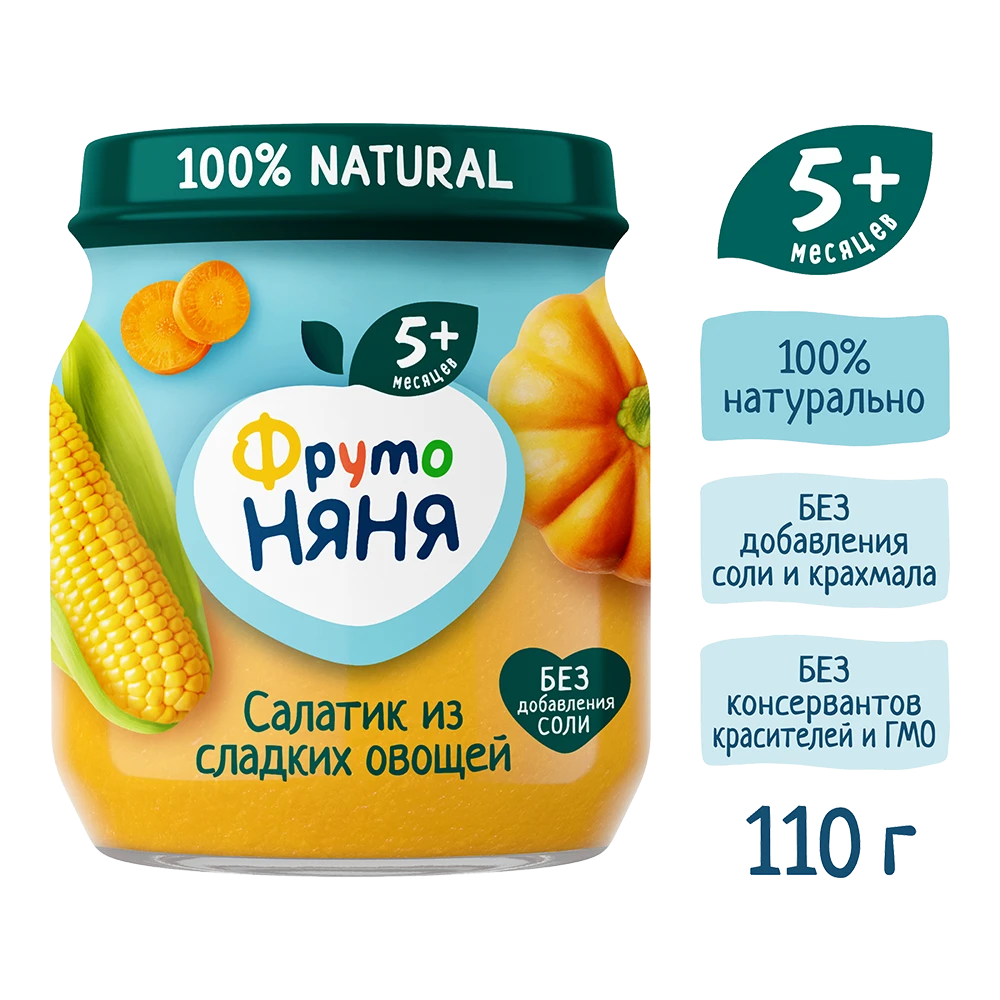 Introducing “Sweet Vegetable Salad” Puree by FrutoNyanya in a new, larger 110 g format. Give your little one even more natural flavor packed into every jar: only carefully selected vegetables and drinking water, with nothing extra!