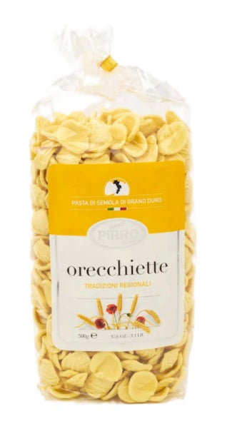 Discover the authentic taste of Italy with our hand-made orecchiette pasta by Pirro. Each 500g package features traditional ear-shaped pasta crafted with care, perfect for capturing rich sauces and creating memorable meals. Made using time-honored techniques, this artisanal pasta delivers superior texture and flavor compared to mass-produced alternatives. Ideal for classic Italian dishes, from simple olive oil preparations to hearty vegetable or meat sauces. Elevate your home cooking with genuine Italian craftsmanship in every bite.