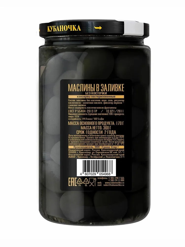 Kubanochka pitted black olives are a perfect addition to any table. Large in size and высокого качества, they are ideal for preparing a wide variety of dishes—from salads and appetizers to pizzas and main courses.
