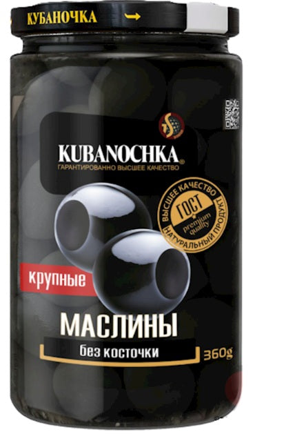 Pitted black olives, Kubanochka,
