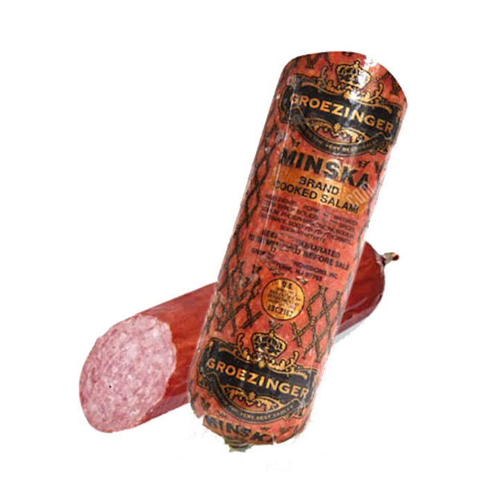 Minskaya smoked sausage represents a traditional Eastern European delicacy crafted with time-honored techniques. This premium offering from Groezinger delivers authentic flavor through careful selection of quality meats and traditional smoking methods. The robust, savory profile develops from slow smoking that infuses each slice with distinctive character. At 635g, this sausage provides versatility for charcuterie boards, appetizers, or culinary applications requiring genuine European authenticity. Ideal for discerning palates seeking genuine traditional sausage without compromise on quality or taste.