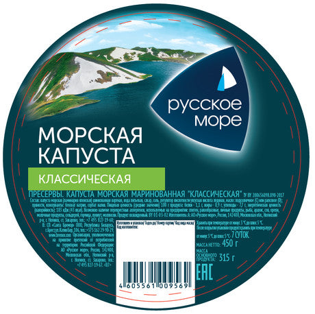 Cooked shredded seaweed (Japanese kelp – Laminaria japonica), drinking water, sugar, salt, acidity regulator (glacial acetic acid), oil: sunflower (C) or rapeseed (D), spices, preservatives: sodium benzoate, potassium sorbate, sweetener saccharin.