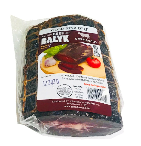 Smoked beef lion balyk carpaccio represents a refined delicacy for the discerning palate. This premium cut features thinly sliced, air-dried beef that's been expertly smoked to develop complex, savory notes. Gold Star Deli's 270g portion delivers authentic Eastern European charcuterie craftsmanship, with a tender texture and rich flavor profile ideal for elegant appetizers or charcuterie boards. The natural smoking process enhances the meat's inherent qualities without artificial additives, making this a sophisticated choice for those who appreciate traditional cured meat preparation.