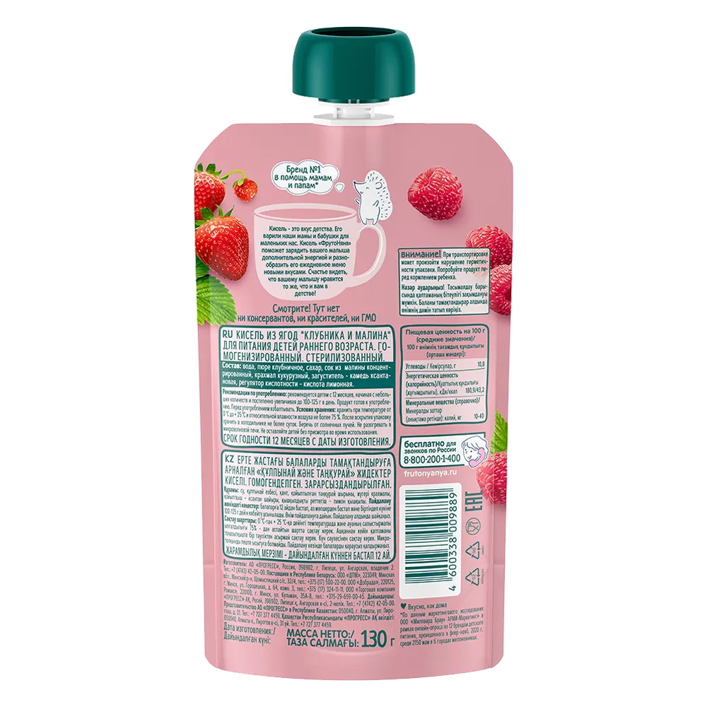 It is made according to a traditional recipe with care for your child. The berry kissel contains natural strawberry puree and raspberry juice. The soft packaging is convenient to take on the go, so your child can get an energy boost anywhere.