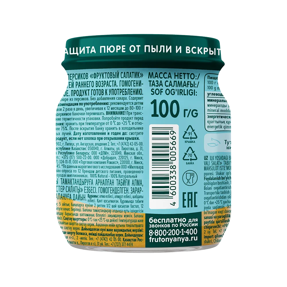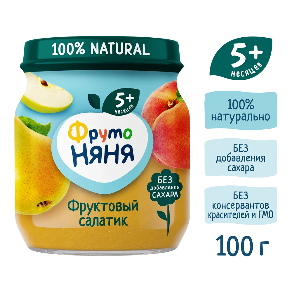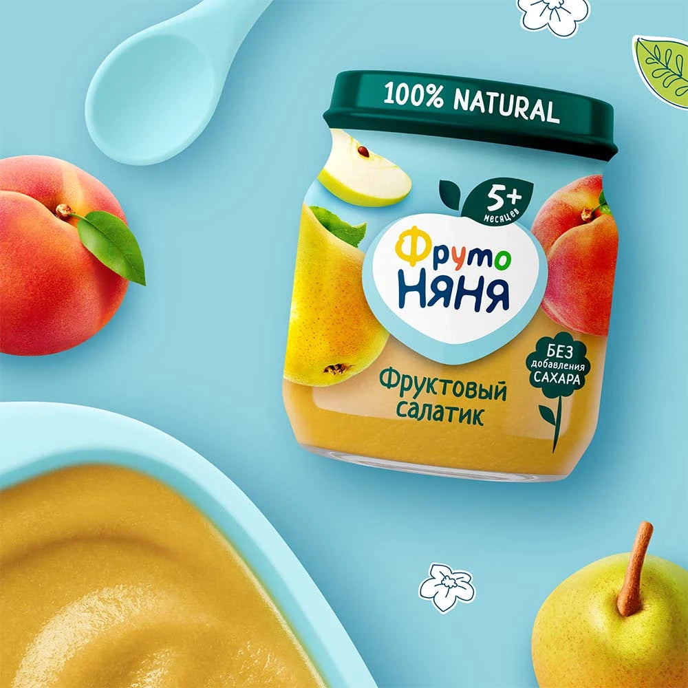 Fruit Salad” Puree by FrutoNyanya helps diversify your baby’s diet during the first year of life. It is suitable for complementary feeding for babies from 5 months old.