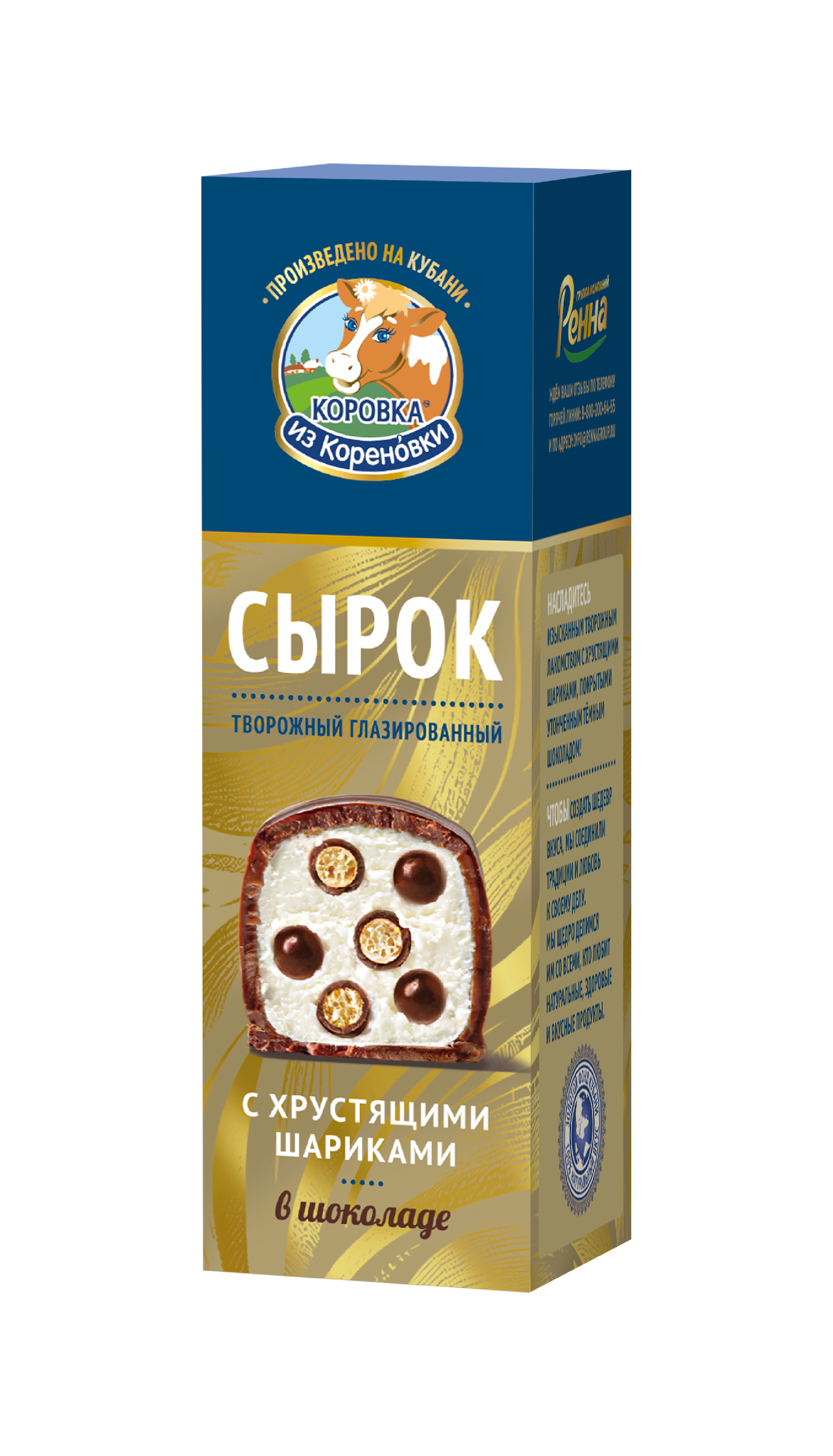 Vanilla cottage cheese bar with rice crisps in dark chocolate, coated in milk chocolate, Korovka iz Korenovki, 40 g x 4 (set of 4)