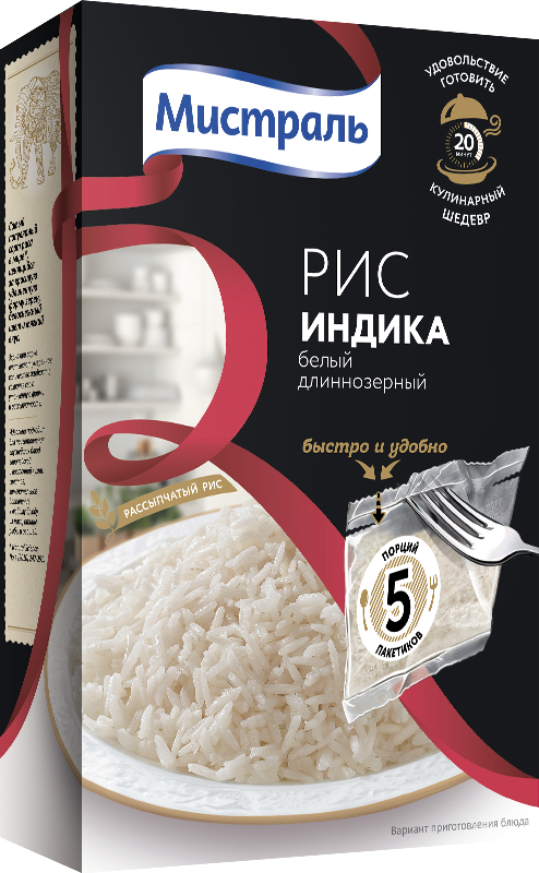 White long-grain Indica rice in cooking bags, Mistral, 5×80 g, 400 g
