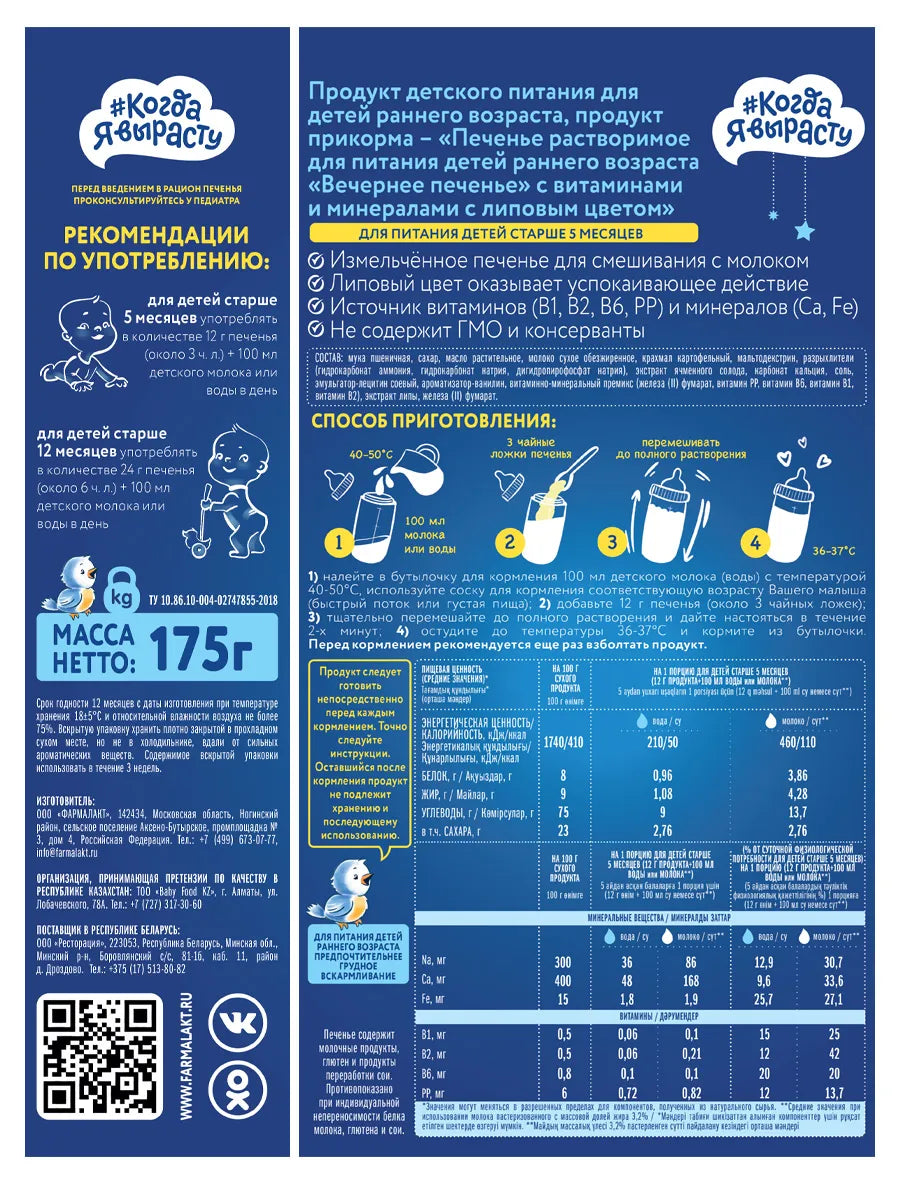 Infant Food Product – Soluble Biscuits for Early Feeding Evening Biscuits with Vitamins, Minerals, and Linden Flower